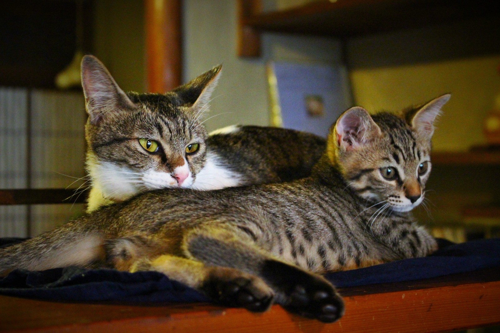 ももこ母さんと桃介は、ひねもす扇風機の風に吹かれています。