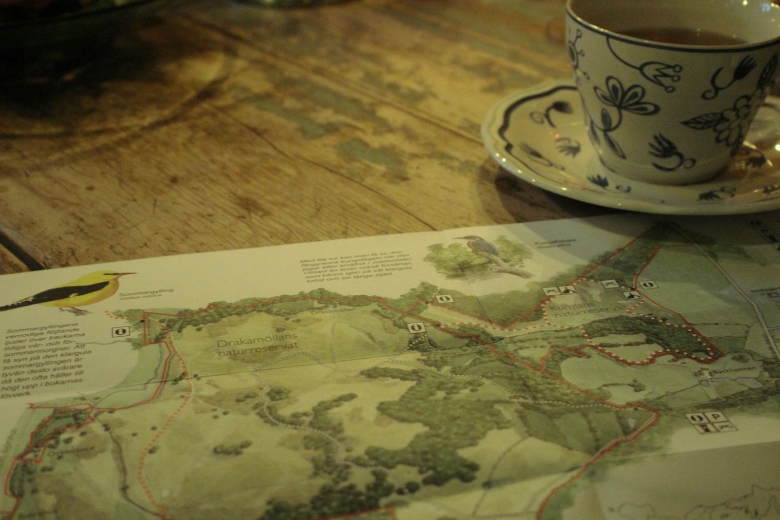 さて、地図を机一杯に広げて、お茶をひとくち。