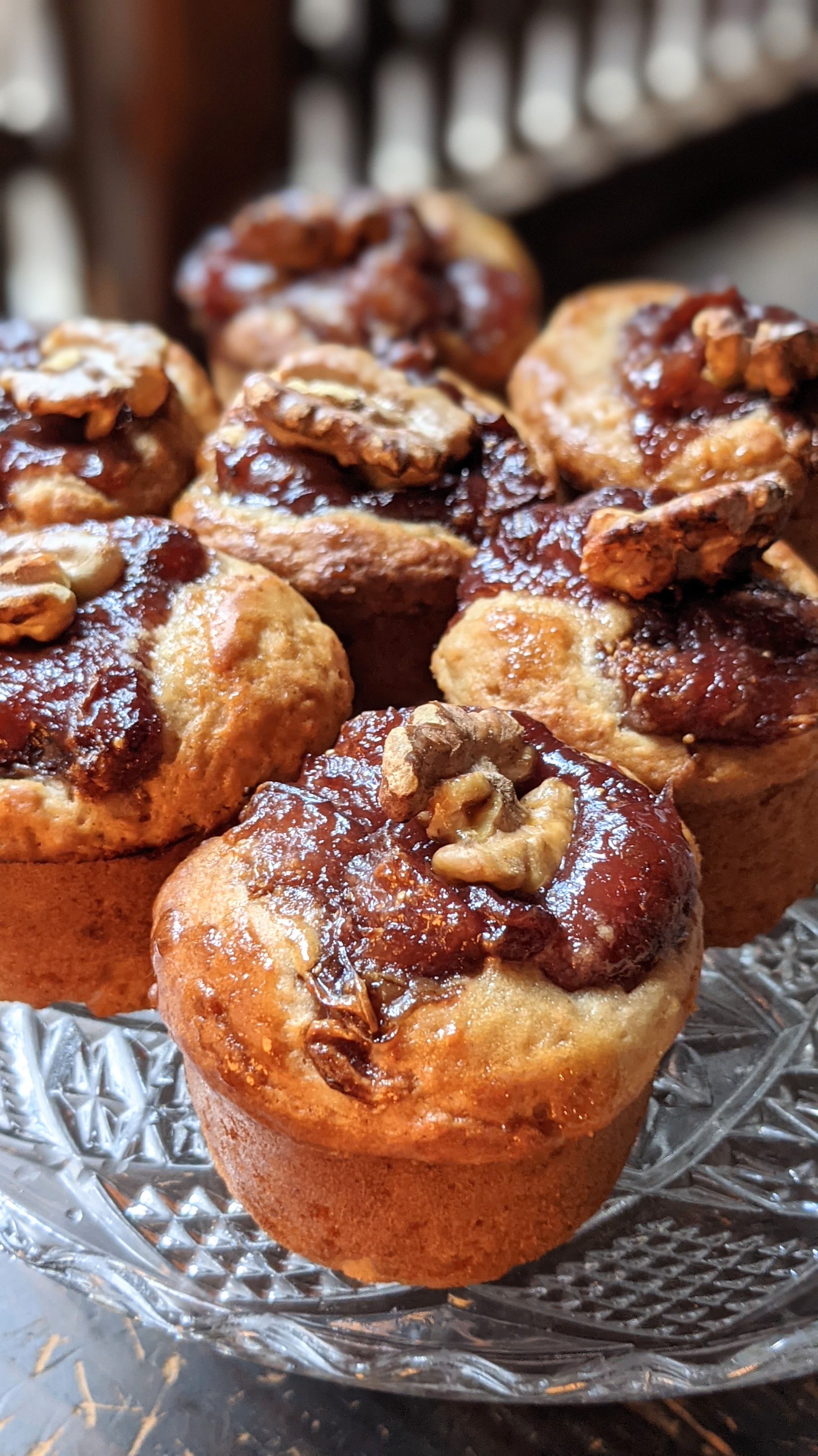 フルーツコンポートのマフィン。まずは無花果を。生地は玄米粉ベースを菜種油でまとめて、バニラを少々。